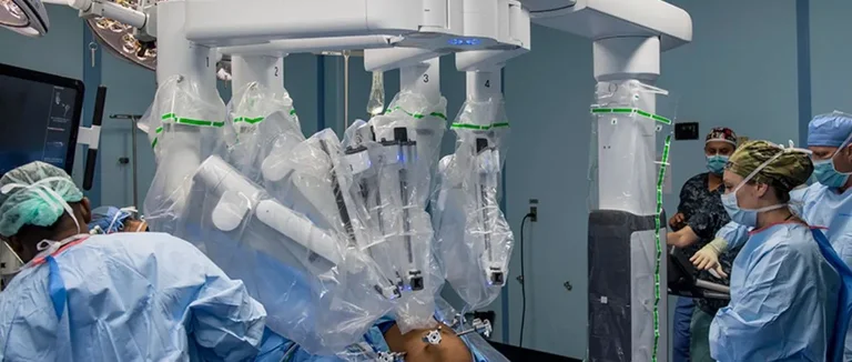 La chirurgie abdominale, comme les prostatectomies, profite aussi de cette technologie. Aux États-Unis, 80% des prostatectomies sont faites avec des robots. Cela améliore la vision et réduit les pertes de sang.